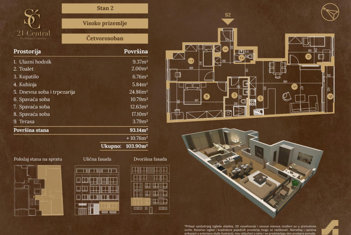 Ovaj stan predstavlja izvrsnu priliku za sve koji žele da spoje moderan način života, kvalitetnu gradnju i odličnu lokaciju.