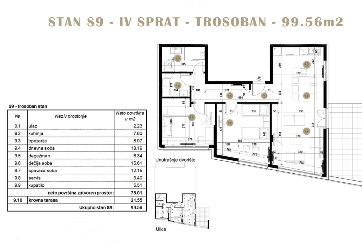 Na prodaju je trosoban stan u novogradnji, površine 78,01 m² + terasa 21,55 m², smešten na četvrtom spratu moderne stambene zgrade sa liftom, koja je trenutno u izgradnji. Objekat se nalazi na Zvezdari, u širem gradskom jezgru, na izuzetno atraktivnoj lokaciji u blizini Beogradskog dramskog pozorišta. Ovaj deo grada odlikuje odlična povezanost sa ostalim delovima Beograda, kao i blizina škola, vrtića, marketa, zdravstvenih ustanova i drugih sadržaja važnih za svakodnevni život.
